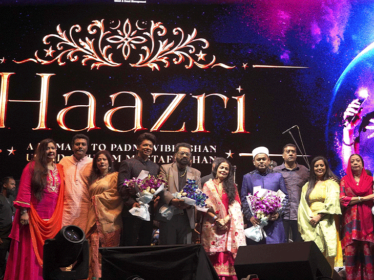 मुंबई के बीकेसी स्थित जियो वर्ल्ड गार्डन में शनिवार को एक खास 'हाजरी' कार्यक्रम का आयोजन किया गया। इस कार्यक्रम के ज़रिए पद्म विभूषण से सम्मानित महान संगीतकार और गुरु उस्ताद गुलाम मुस्तफा खान को उनकी पांचवीं पुण्यतिथि पर श्रद्धांजलि दी गई। यह पहला मौका था जब उस्ताद साहब के शिष्यों और देश के जाने-माने गायकों ने एक ही मंच साझा किया।